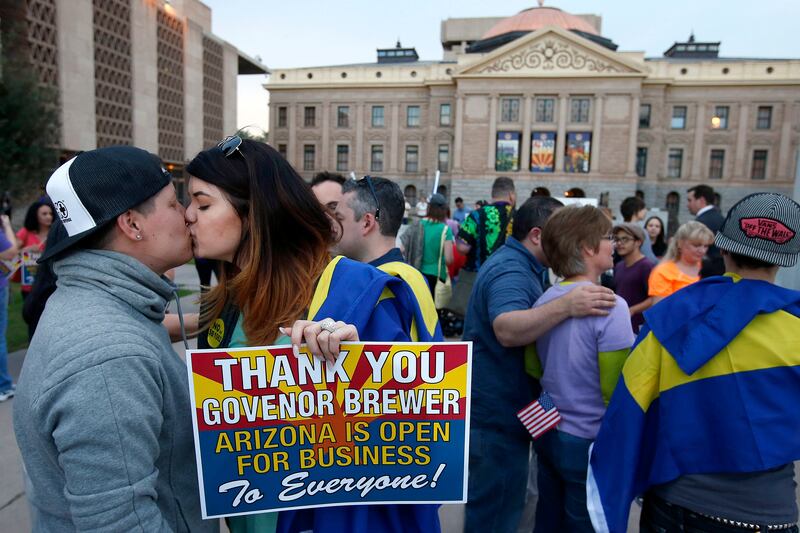 It’s not clear that Arizona Gov. Jan Brewer looked much beyond the vociferous objections of the business community when she vetoed a law that would have permitted commercial enterprises to scorn gay and lesbian customers on the basis of their owners’ professed religious convictions. It was a prudent veto, endorsed by the state’s Republican establishment—by Sens. John McCain and Jeff Flake, and even by several legislators who suddenly urged Brewer to block the very law they had just voted for. Marriott Hotels joined the opposition—and so did a once and again member of its board named Mitt Romney.
