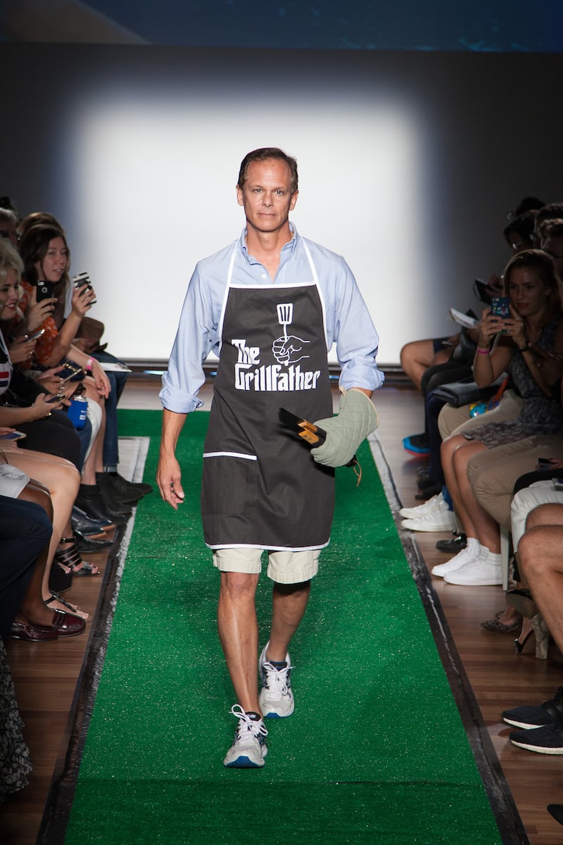 To really underscore the mood, a screen at the head of the runway showed a loop of videos of dad doing typical dad things—barbecuing chicken, mowing the lawn, teaching kids how to fish—playing on a loop. Mixed into the funny snippets were clips of dads playing or resting with their kids in candid and genuinely touching moments of fatherhood.