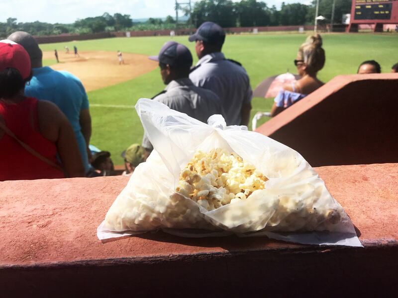 The game I saw at Estadio Mártires de Barbados in Bayamo was at night so heatstroke wasn’t a threat. Things were a little fancier in that ballpark—gendered washrooms, and the pork sandwich vendors had grills to keep the meat warm.