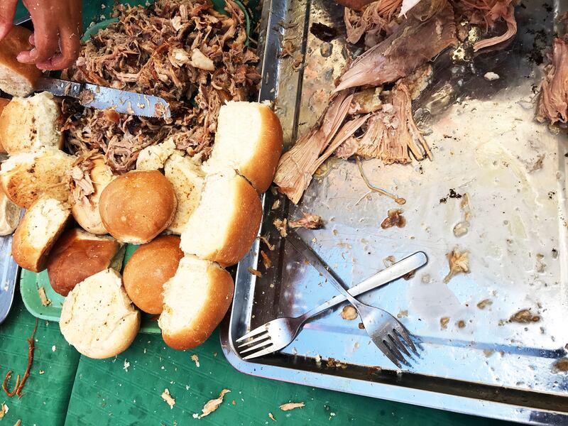 Jennifer BainOne guy hauls around a garbage bag full of individual bags of puffed pork rinds. Another has baggies of salted but not buttered popcorn. Homemade ice cream bars provide heat relief, and coquitos (those sugar-coated, shredded coconut balls) are a newfound addiction.