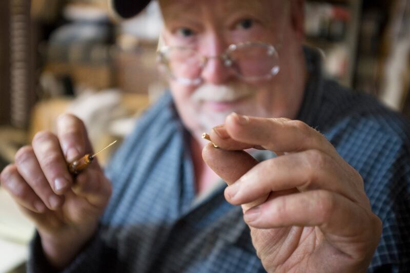“I keep track of the dimensions of very single rod that goes out the door,” he says, pointing to a sheaf of papers with batches of numbers scrawled on them. “I’ve got a library of that, plus rods made at Leonard and Thomas & Thomas.”