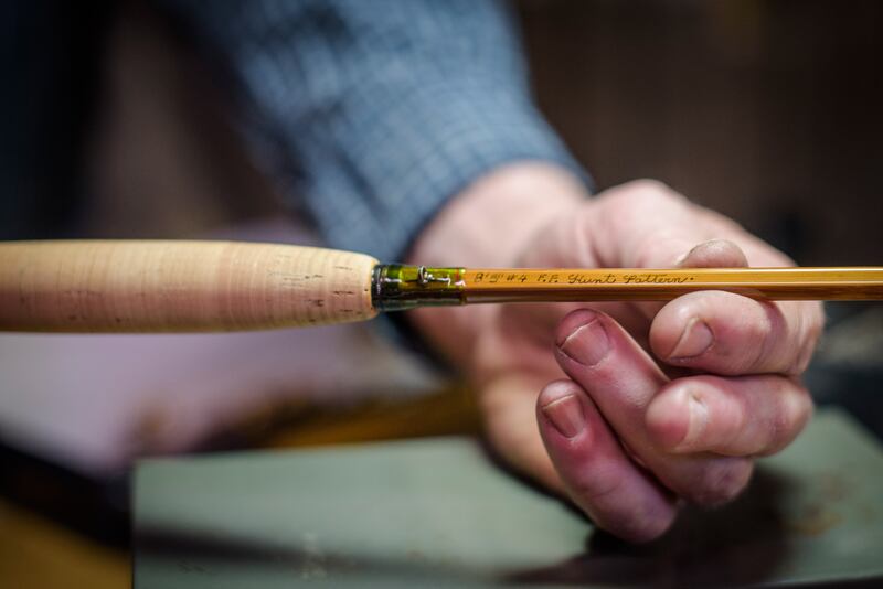 His rods themselves, multi-piece products that average between 7 and 9 feet in length when assembled, taper to impossibly fine points, especially when one considers they’re made from six separate pieces of bamboo, split from a single cane and fused back together to create a desired strength and flex.