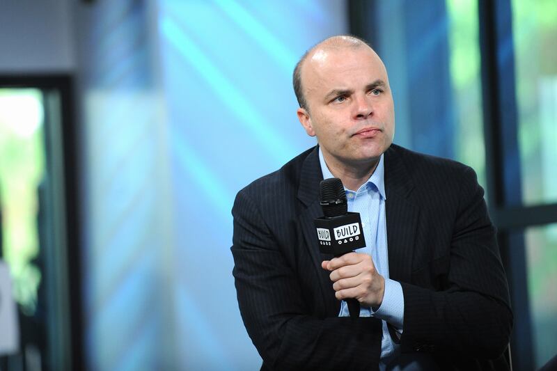 Playwright J.T. Rogers discusses his play Oslo during Build at Build Studio on May 17, 2017 in New York City.