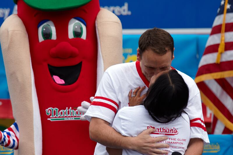 “It was close but he pulled away at the end. It was intense,” he said. “With the rain and everything, the natural casings, they got a little bit tough to swallow. He pulled away at the end, but I’ll get him. I’m sure I’ll get him next year.”