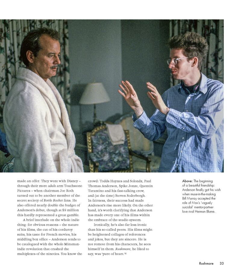 On Murray’s first day on set, Anderson whispered his instructions to the star, fearful of ruffling feathers. Murray instantly made a big deal out of deferring to the young director, a completely different temperature to James Caan [on Bottle Rocket]. He was having a ball, hauling equipment with the crew, more court jester than diva. He even presented Anderson with a blank cheque to fund a helicopter shot when Disney baulked at the $75,000 cost (the shot was dropped in any case, but Anderson is still in possession of that cheque should an emergency arise).