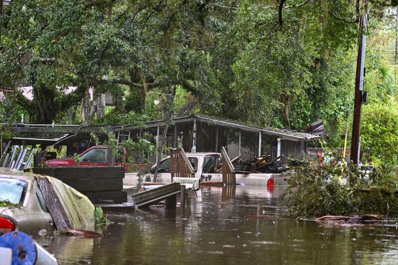 A backyard is flooded in Steinhatchee, Florida, by Hurricane Idalia.