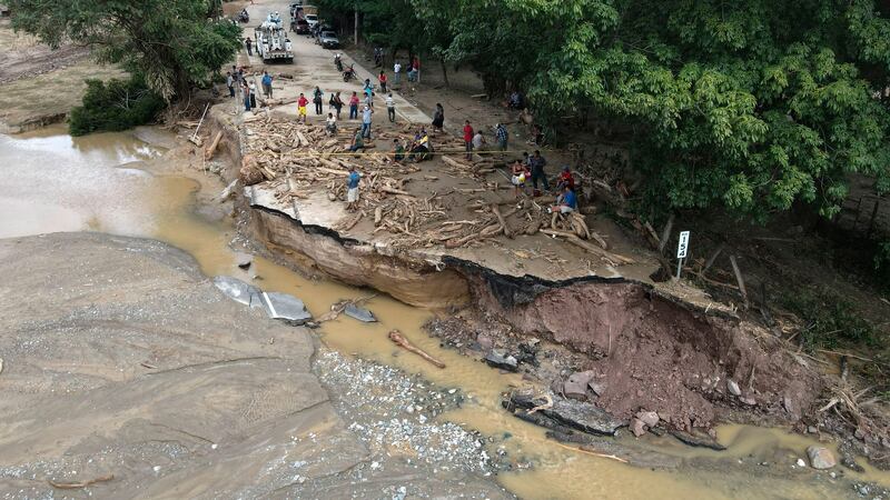 Hurricane Eta detroyed a road in Gualan, Zacapa department.