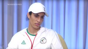 About an hour and a half into the press conference, a woman in the back of the room began shouting “viva l’Algerie” and waving an Algerian flag. She was later identified as Roumaissa Boualam, one of Khelif’s teammates and a boxer in the flyweight division.