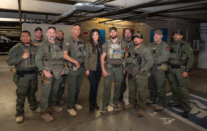 It was just the latest photo-op for Noem, who has made a habit of joining front-line operations while wearing photo-perfect outfits.