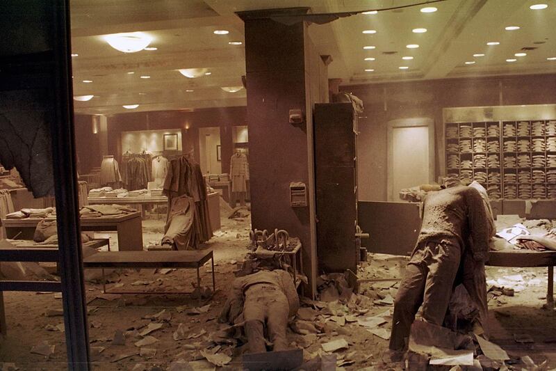 The floor of the Brooks Brothers shop near the World Trade Center was littered with debris after the Twin Towers collapsed. The store was turned into a temporary morgue.