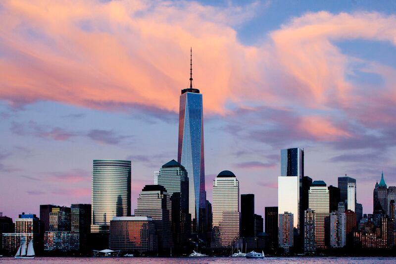 In this photo taken on September 4, 2013, One World Trade Center rises above the lower Manhattan skyline in New York.