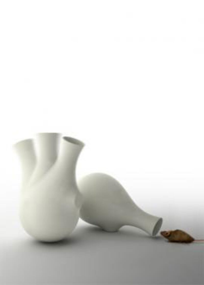 Designed as a humane mousetrap, the Onedown looks like an elegant vase. It rests horizontally, however, with bait inside. Once a mouse crawls in, a metal insert and the mouse's weight cause the vase-like trap to swing vertically, trapping the mouse but not killing it.