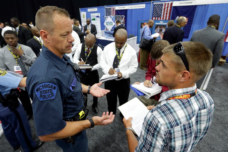 “It’s been a little tough,” he said. “They said bring 35 résumés, and I brought 50. And half of the people here don’t want your résumé, they want you to go to their website, and it’s difficult. That’s all.”