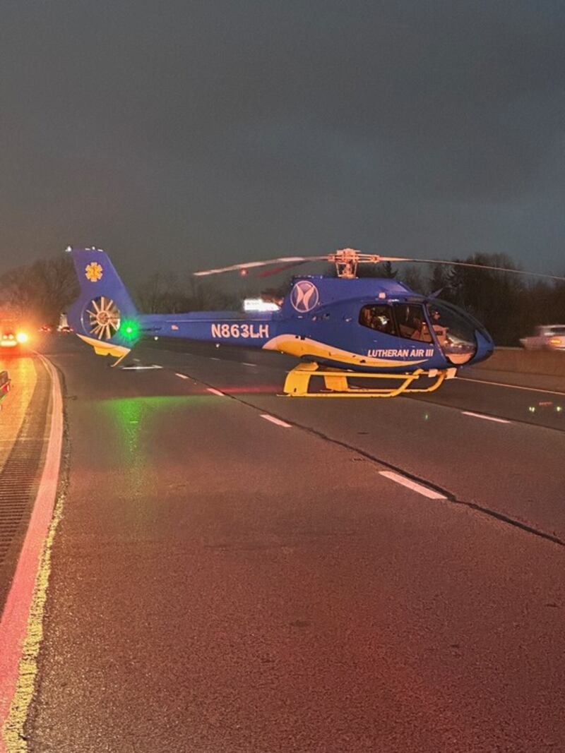The medical helicopter that transported Reum to a hospital in South Bend, Indiana.
