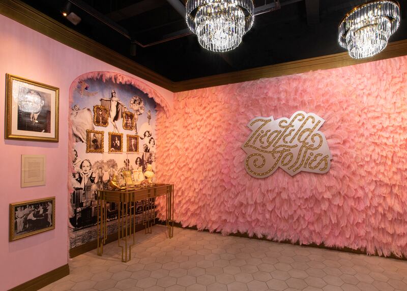 Potted histories of major and now forgotten figures like George M. Cohan are provided, alongside the history of minstrel shows, vaudeville, and, in the first major themed room, the Ziegfeld Follies—like every room, a concise history also designed with the needs of Instagrammers in mind, with a lot of feathers, spangles, and neon.