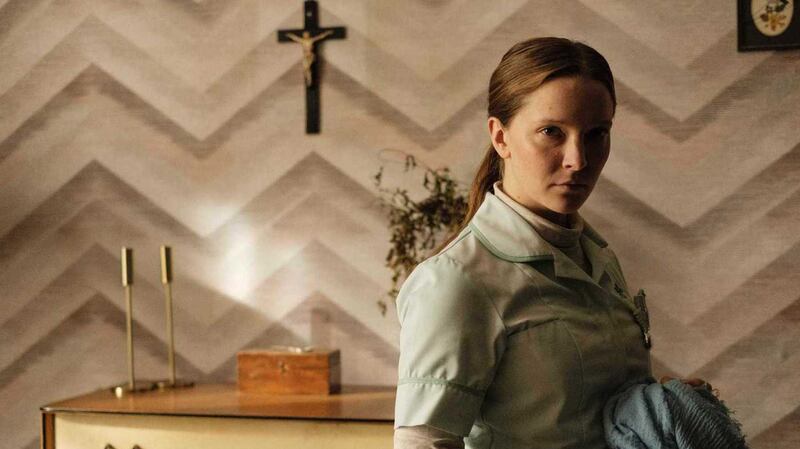 Morfydd Clark is writhing on the floor, moaning and clawing at her face in ecstasy. In slow waves, she seems to be electrified—not by man, but by The Holy Spirit, touched in divine reward for her devotion to God. The light warps and dims around her. Her breathing grows louder. She is special. She is chosen. She is, for an instant, pulling the skin off her own skull, revealing a glimpse of red flesh underneath.