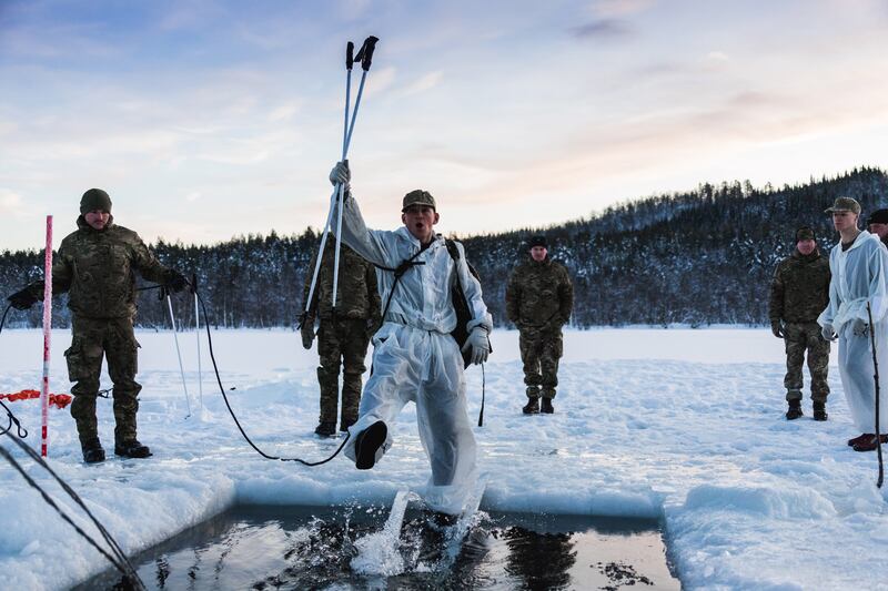Capt. Samuel Moreton, 539 Assault Squadron, Royal Marines, smiled as he recalled one of his recent charges who was struggling to adapt. “It’s not that we don’t get cold; it’s that we know how to deal with it,” he said. “Armpits are always warm. I had a guy’s hands in my armpits last week when he said he lost feeling. A few squats together and the feeling was soon back.”