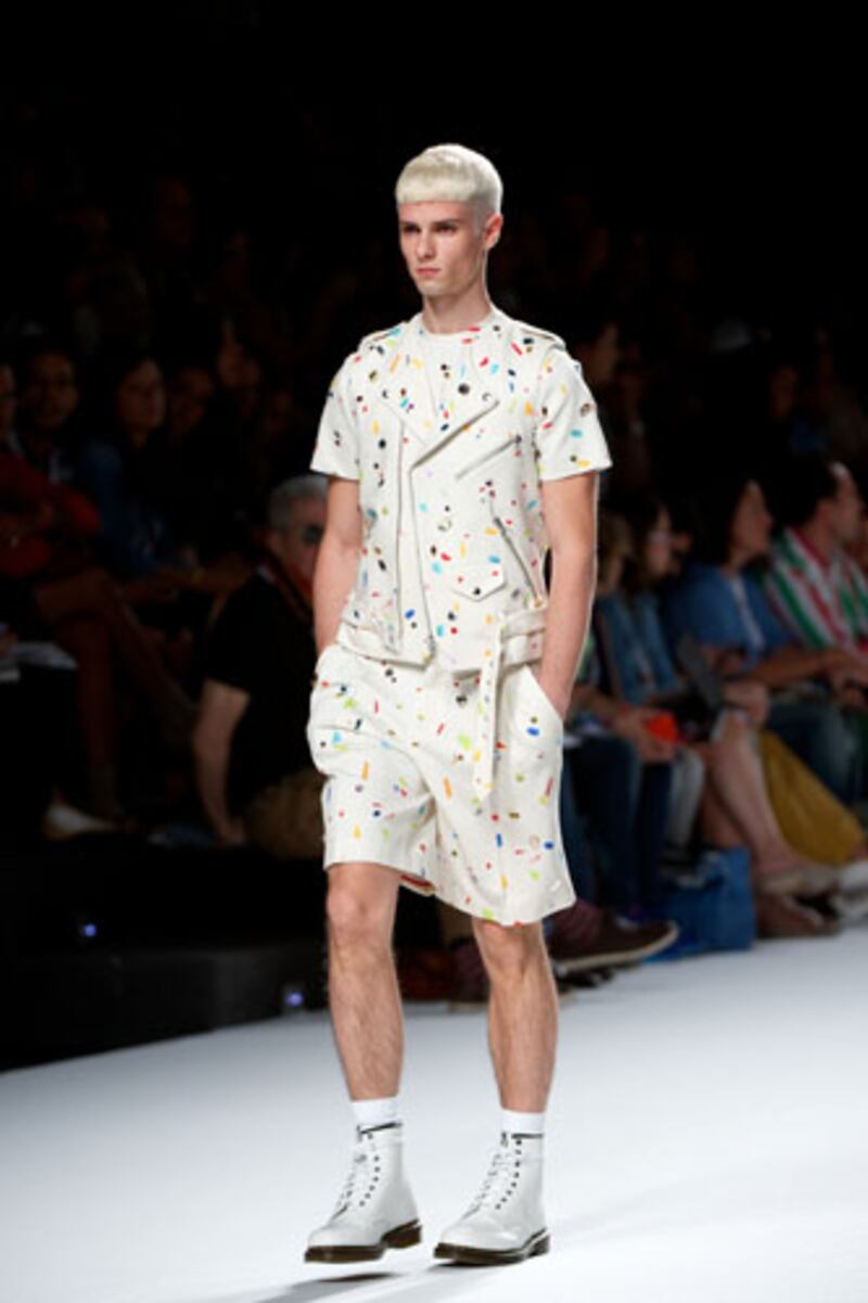 Local actor Joan Carles Suau agreed that rompers may just be too hard a sell for guys in the Spanish capital. “They are for the atrevido,” he said. (Atrevido is Spanish for daring). But Suau claimed that the city isn’t without them, and that there are many guys who would gladly rock a onesie, especially if Davidelfin designed it. Sergio Santiago, a fashion-forward Madridista who works in advertising, said that he, too, can see himself wearing a romper, but added that “Davidelfin has a certain target, and those people are the ones who will wear the romper. Maybe not the average guy on the street.”