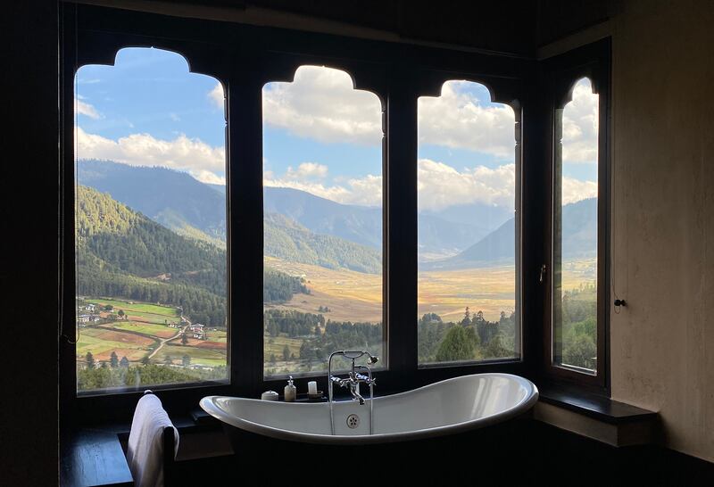 Strolling at sunrise to see the black-necked cranes that migrate to this valley or sitting by the lodge’s fireplace, my conversations with guests inevitably came back to what advice they would give other travelers. All agreed that what you don’t realize before coming is just how tiring it can be. Add in stupa after dzong after shrine, and it can feel overwhelming. Too often, guests will arrive from the Punakha Valley and depart the next morning for Thimphu, missing out on an experience that could have been restorative. My advice? When planning, stress to your guides that you want to relax. Spend more than a night here. Or, if you can only do a night, arrive early and depart late.