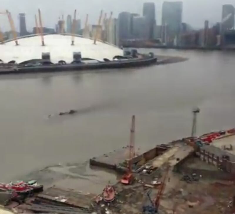 While crossing the Thames in a cable car last month, a YouTube user recorded footage of a moving shape in the river. The object surfaced to reveal two dark gray bumps, before retreating underwater.