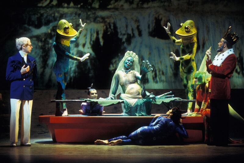 An ensemble scene from Mark Morris's production of Rameau's Platée, Royal Opera, 1997.