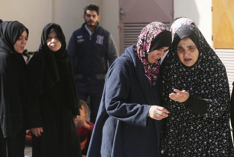 Relatives of the deceased mourn as bodies of Palestinians killed in Israeli attacks are taken out of the mortuary of Al-Aqsa Martyr's Hospital to bury in Deir al Balah, Gaza on November 21, 2023.