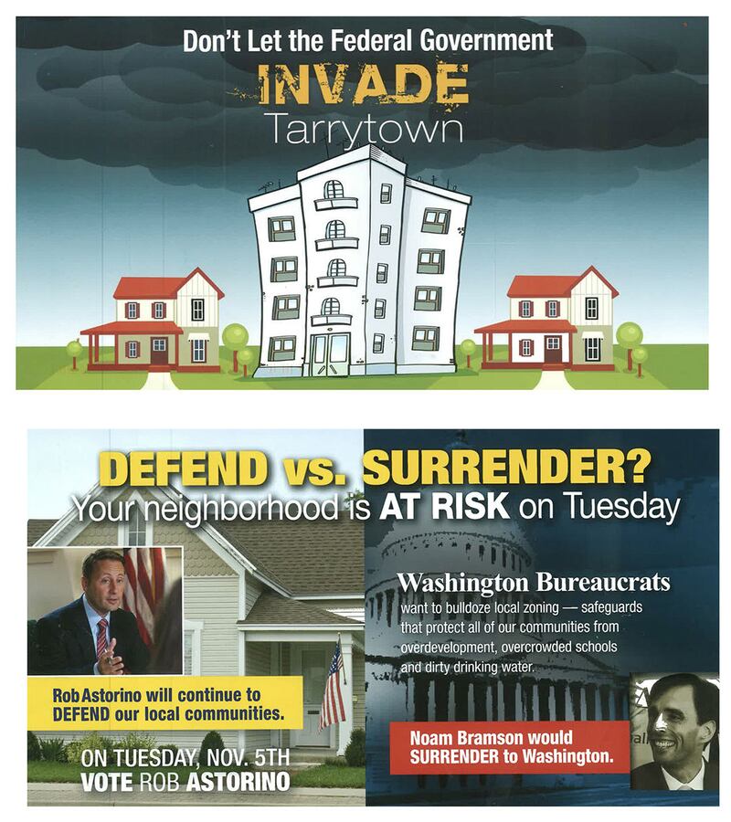"If a federal department, in this case HUD, can dictate to local officials what they will and won’t do, we’re careening toward a different country," Astorino warned, as part of his fear-based campaign including ads showing dark clouds overtaking a peaceful residential neighborhood as multi-family developments sprouted.