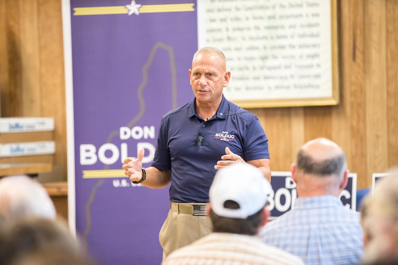 Republican Senate candidate Don Bolduc greets supporters at a town hall event on September 10, 2022 in Laconia, New Hampshire.