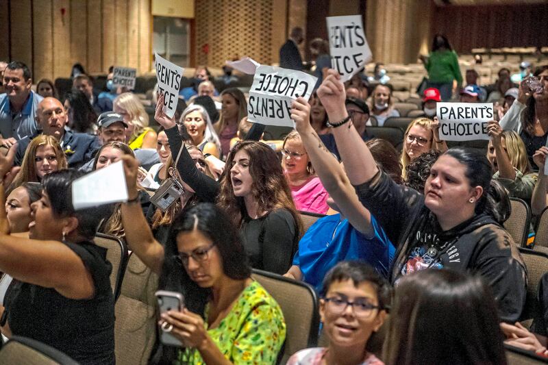 Joe Burbank/Orlando Sentinel/Tribune News Service via GettyThey are deliberately using threats of violence to terrorize the majority and have us cede ground. It seems to be working, as school-board members are stepping down across the country, unwilling to tolerate the “toxic and impossible” environment.