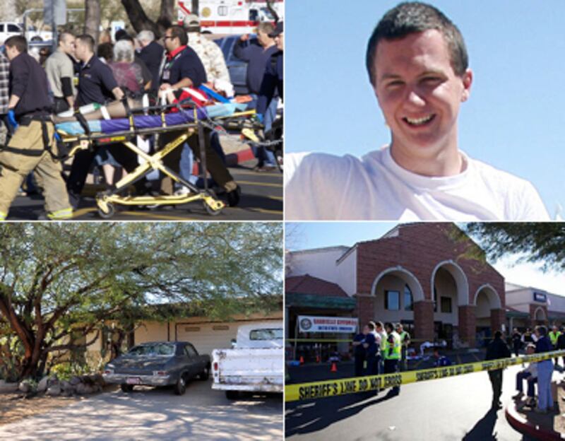 But last Friday night, his conduct struck them as even more peculiar. Around midnight, they spotted him approaching. “He was walking down the street by himself,” Michelle told The Daily Beast. “He had on a hoodie, and he was wearing black.” As they crossed paths, he walked directly between them. The encounter struck them as slightly spooky. “Why is someone walking around the neighborhood all in black in the middle of the night?” the siblings wondered. Only later would they realize, to their horror, that Loughner was only hours away from allegedly killing six people and wounding 14 more, including Rep. Gabrielle Giffords.