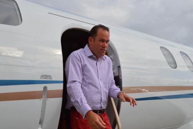 Jason Cardiff disembarking from a private plane.