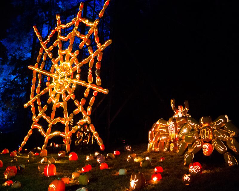 The Great Jack O’Lantern Blaze—a festival of more than 7000 pumpkins, orchestrated by the creative direction of Michael Natiello, is a spectacle. A team of 12 carvers, 2900 volunteers (to scoop and light the pumpkins each night), carpenters, and lighting designers, have made the 13th annual Blaze a reality.