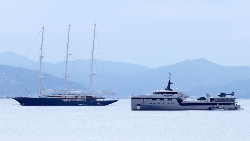 Koru and Abeona, Jeff Bezos yachts were seen on June 13, 2023 in Portofino, Italy.
