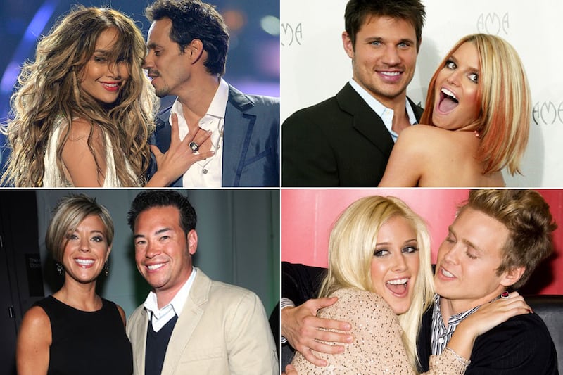 Twenty-two-year-old virgin and pop star Jessica Simpson made headlines in 2002 when she famously wed (and bed) boy band member Nick Lachey. Less than a year after their highly publicized wedding, the couple thrust themselves further into the spotlight with their hit MTV series, Newlyweds: Nick and Jessica. But besides her on-air inability to say "platypus" or determine the contents of a can of Chicken of the Sea, Simpson earned attention in 2005 when she and Lachey announced their "mutual decision" to "part ways" in a statement. It seems that as the couple's fame grew stronger, their marriage became weaker. Although the two have since gone on to high-profile relationships, they have tried not to play them out on television. "I have to sew my lips together," Simpson told Elle years later of her love life. "It's hurt me in the past."
