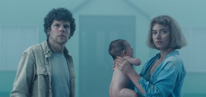 In the face of this uncharted-territory reality, Eisenberg concedes that “it feels strange to talk about anything else” besides the ongoing pandemic. Nonetheless, the 36-year-old actor—equally well-known for acclaimed indies (Roger Dodger, The Squid and the Whale) and big-studio blockbusters (Zombieland, Batman v Superman: Dawn of Justice)—remains hopeful that his current films will find an audience eager for entertainment, and distraction, during their indefinite quarantines. Moreover, he’s confident that both have something unique to say about our insane present moment, be it the rise of anti-Semitism here and abroad (and the need to hide out in order to guarantee the safety of one’s self and others), or the calamitous pitfalls of suburban domesticity—the latter topic proving all the more relevant as individuals and families heed warnings to stay at home.