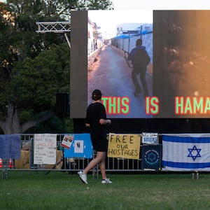 In a recent statement on Instagram, the Bear Jews claim they “had no connection with any of the clashes that took place on the night of April 30th.” Instead, the group says it simply erected a giant video screen across from the pro-Palestine encampment that showed footage of the Oct. 7 Hamas terrorist attacks on Israel.
