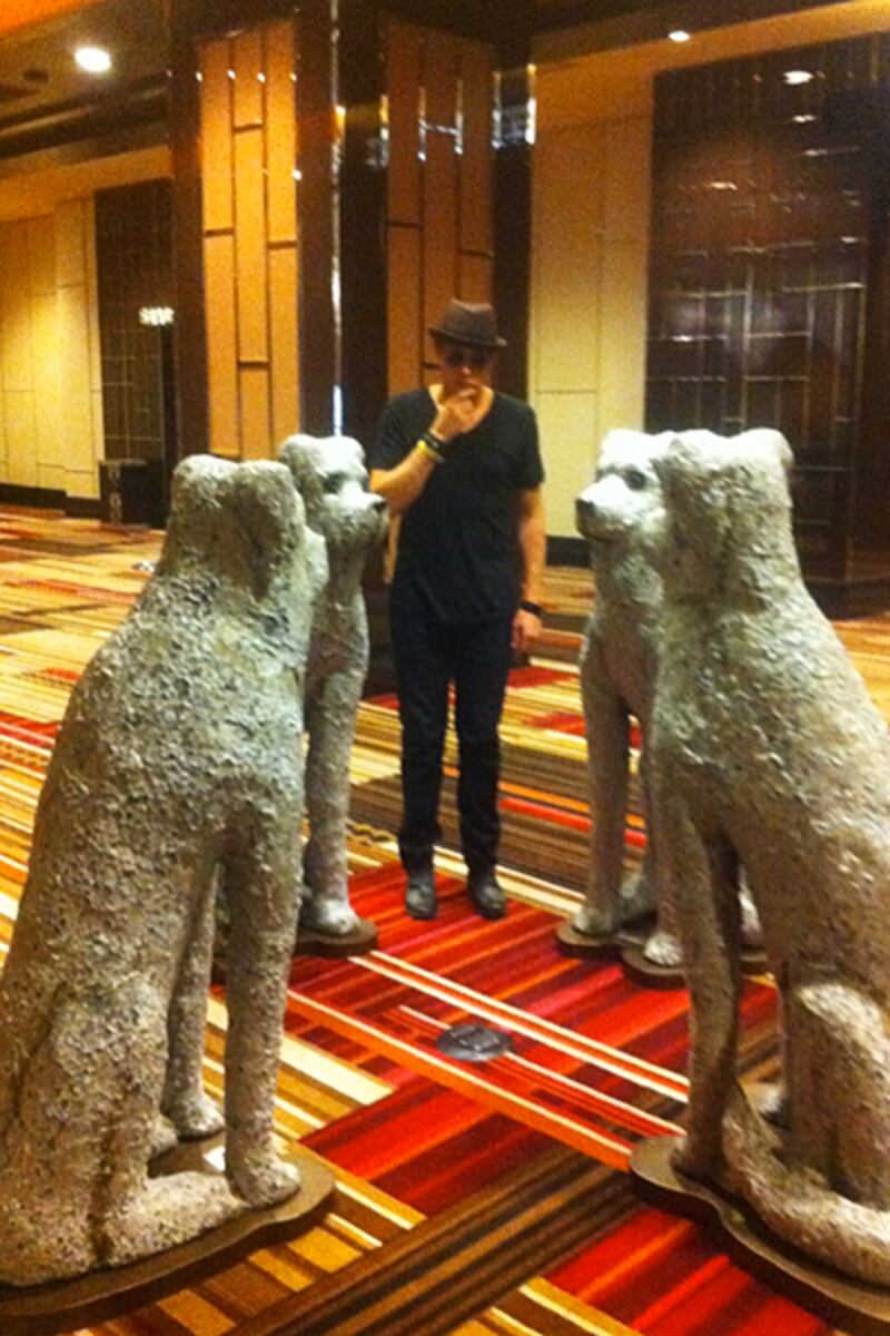 Glee’s lankiest star Cory Monteith almost looked small next to four giant dog sculptures he posed next to. “Just chillin with my dogs, yo,” Monteith tweeted. He spent the week rocking out to Lady Gaga (and hopefully taking Jim Carrey’s advice) at the I Heart Radio music festival in Las Vegas before going back to filming for his third and reportedly last season of Glee.