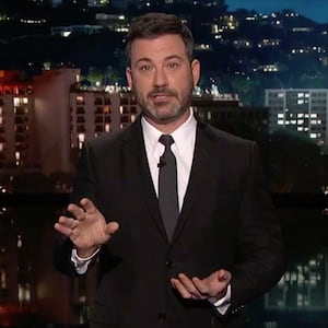 “I don’t want to talk about Donald Trump every night,” Kimmel continued. “None of us do. None of us who host these shows do, but he gives us no choice. If he sat in the White House all day quietly working on things I would almost never mention him because it’s not interesting, but before 10 a.m. today, before 10 o’clock this morning: his former campaign chairman was sentenced to prison for the second time in a week, he called himself the most successful president in history, and he tweeted to let people know his wife hasn’t been replaced by a body double. I’m not supposed to mention that? Obama wore mom jeans one time we made jokes about it for six straight years.”
