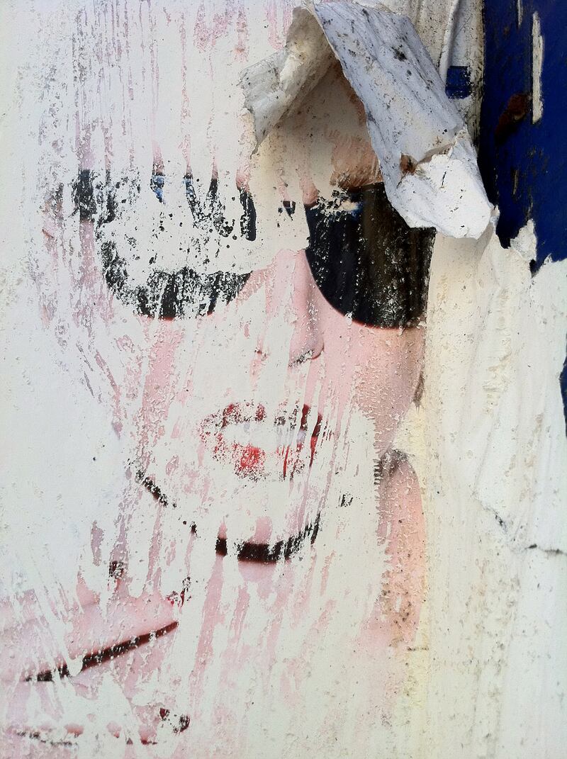 The actor and director Joel Grey (Cabaret) has for years spent his free hours prowling city streets looking for billboards and signs that have begun to decay and show what’s underneath. The layered, weathered images, collage-like and surreal, become strange works of art themselves once they’re framed by Grey’s smart-phone camera. If this seems like a stunt, be assured it’s not. Yes, anyone can do this, but not everyone has Grey’s keen eye for composition, color, and the genuinely spooky textures in these tributes to the beauties of decay.
