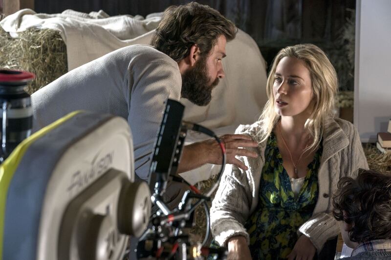 John Krasinski directs his wife, Emily Blunt, on the set of ‘A Quiet Place.’