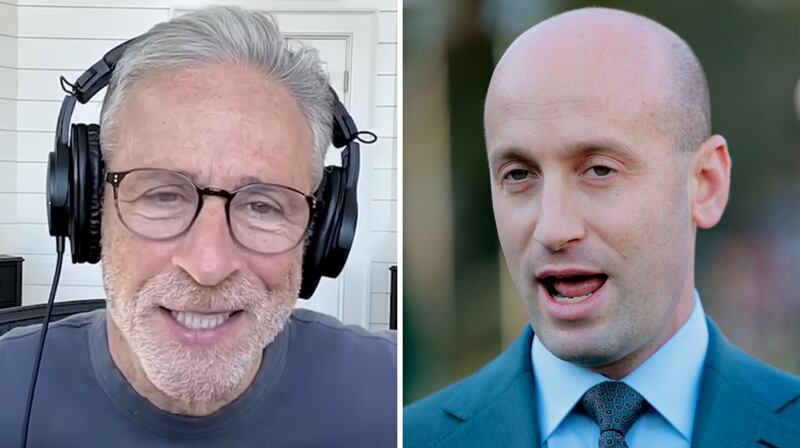“To see the ghoul of ghouls, Stephen Miller, just get f---ing hard talking about, it’s shocking,” Stewart said at the top of his Weekly Show podcast Thursday.
