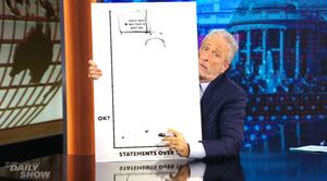Jon Stewart broke down why Donald Trump’s “gold cherubs” in the Oval Office undercut his “f---ing wrongheaded” idea that “Americans just have too much.”