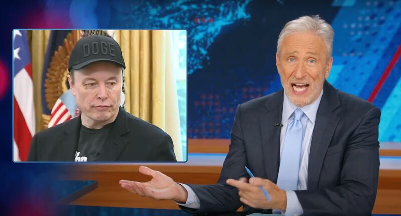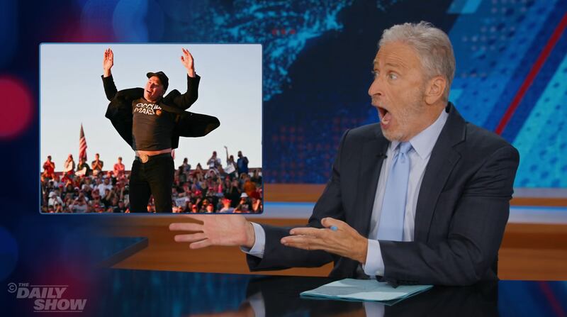 “Look at this f---ing guy,” Stewart joked. “He went from tech titan, given a mandate to move fast and crush the deep state, to... guy who had a bad night in Nashville at a bar he can’t remember.”