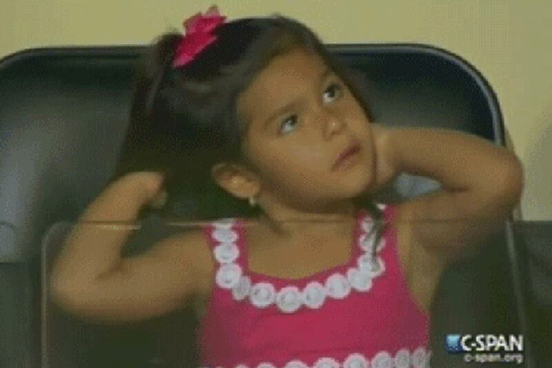 The television cameras quickly caught up with Castro’s wife and daughter, who were sitting with his mother, and little Carina Victoria wasted no time. Immediately, she started primping and flipping her hair from side to side.