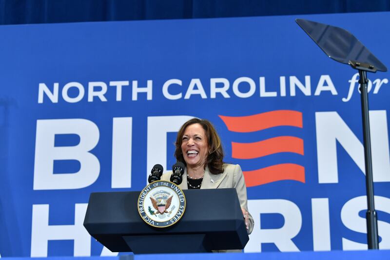 “Some of you may have heard Donald Trump’s running mate deliver remarks at the Republican National Convention,” Harris began Thursday at the campaign event; her seventh visit to North Carolina this year and 15th trip to the state since taking office.
