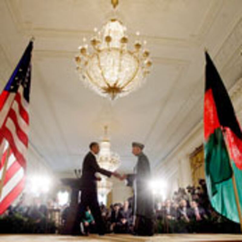President Hamid Karzai’s long visit with President Obama this week was a public love fest with only mild groping in private. Obama didn't threaten his guest about repairing his well-documented sins of rulership. Peace and mutual praise were prearranged two weeks ago by Karzai’s envoy to D.C., none other than Ashraf Ghani, one of Karzai’s main rivals in the recent disputed presidential election. Why the kid gloves and the love fest? Because, despite America’s huge investment in lives, money, and prestige, Karzai has the upper hand—for the moment—or so it appears after two days of meetings.