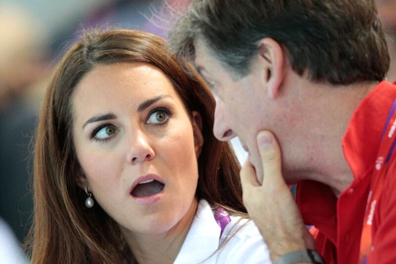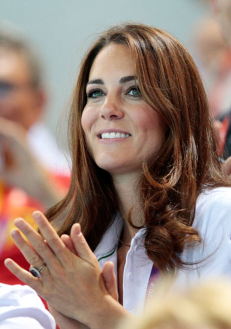 Kate Middleton was back at the Olympic Park today, cheering on Britian's synchronised swimming team. She looked relaxed, with her glossy hair dow, and sporting a Team GB polo shirt.