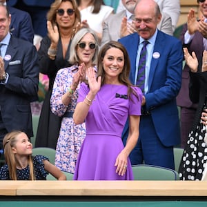 Princess Charlotte of Wales and Catherine, Princess of Wales court-side of Centre Court during the men's final on day fourteen of the Wimbledon Tennis Championships.