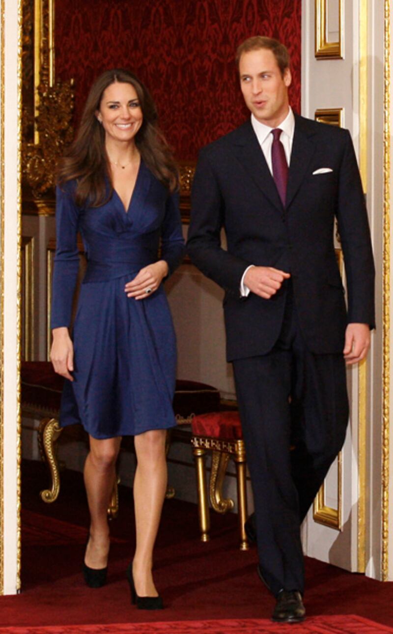 To officially announce her engagement to Prince William in November 2010, Middleton wore a midnight-blue Issa wrap dress—which perfectly matched her sapphire engagement ring. The frock sold out in 24 hours and sparked a craze of “little blue dresses.”