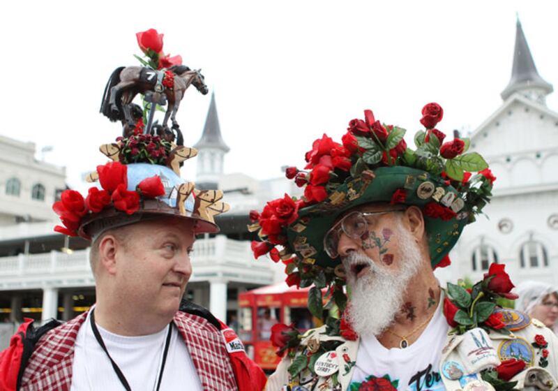 Skip Copnick and Charles Matasich go with rose-themed hats as an ode to the races.